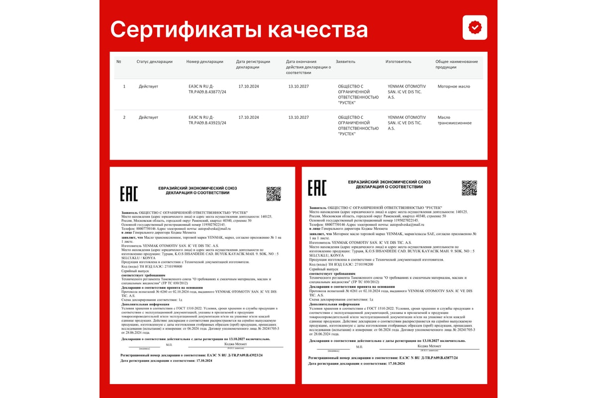 - Масла Yenmak созданы на базовом масле 4,5 групп