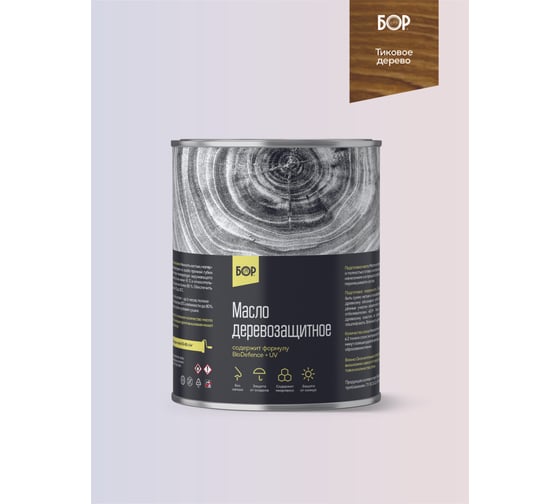 Масло деревозащитное атмосферостойкое БОР ТИКОВОЕ ДЕРЕВО (БАН 0,7 КГ / 14 ШТ) 4690417147458