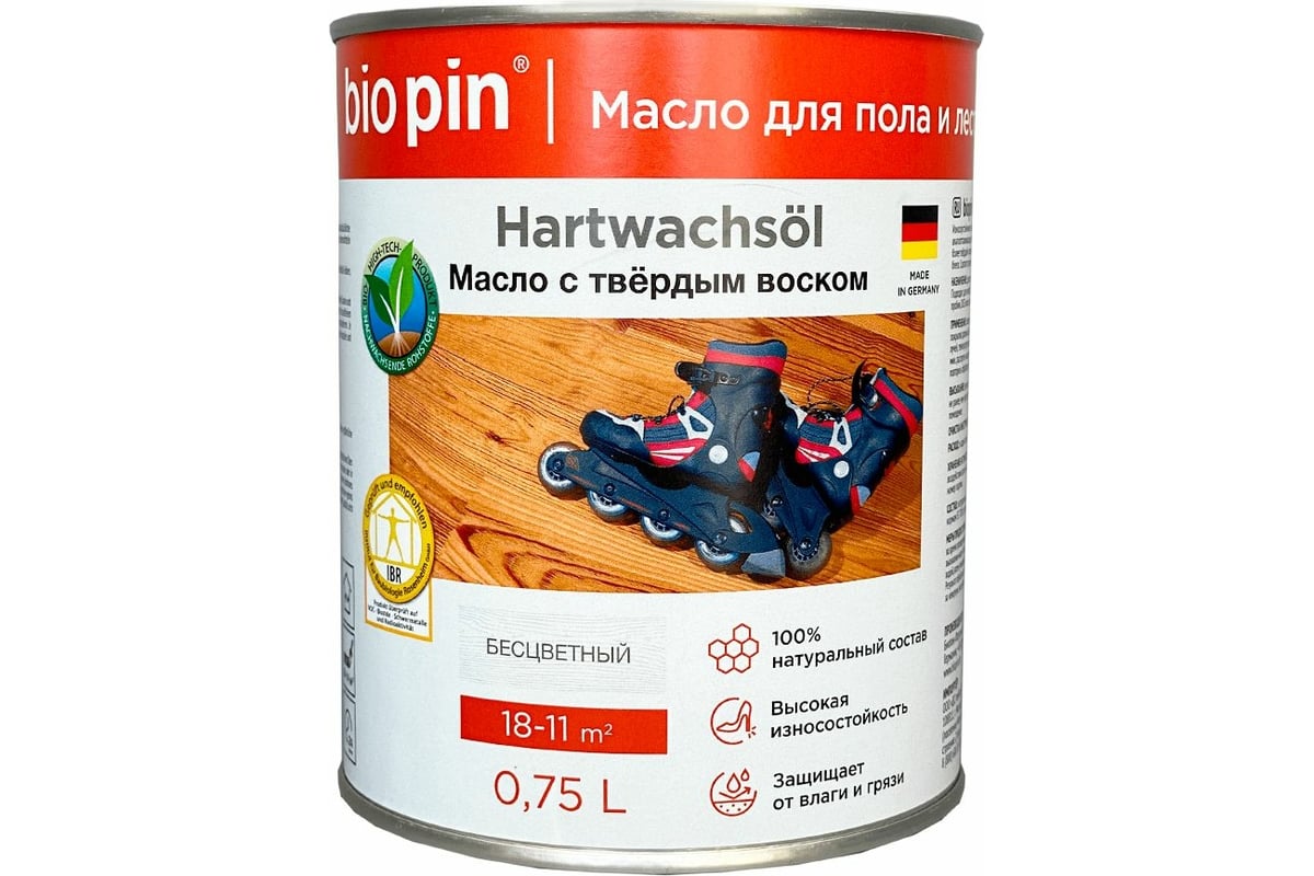 Масло для пола с твердым воском BIO PIN 1910 Hartwachsol бесцветное 0,75 л 19101
