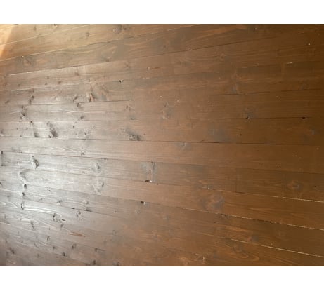 Выглядит хорошо, как надо, будто живая древесина, но с защитой оттпоследующей желтизны. Слегка белесая.