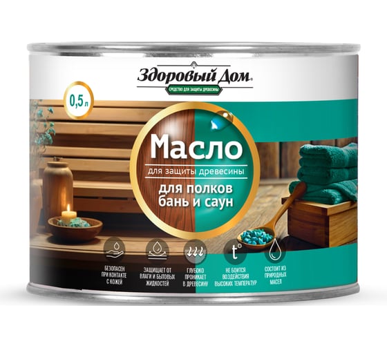 Масло для полков бань и саун «Здоровый Дом» предназначено для защиты древесины в банях и саунах. Масло обеспечивает долговременную защиту от влаги и грязи, снижает водопоглощение древесины даже при длительном воздействии горячей воды. Безопасно при контакте с кожей человека и животных, не оказывает раздражающего воздействия, не содержит органические растворители, не имеет запаха.