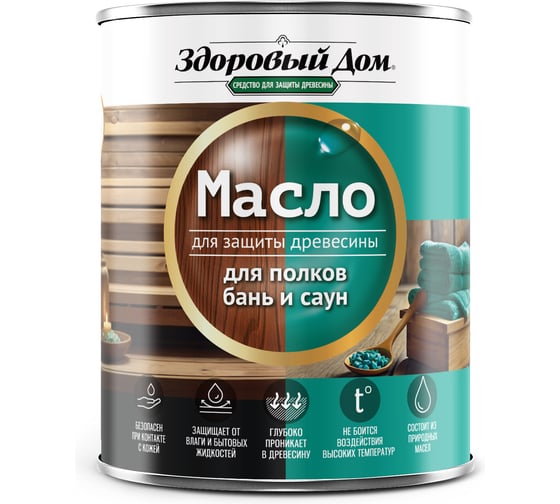 Масло для полков бань и саун «Здоровый Дом» предназначено для защиты древесины в банях и саунах. Масло обеспечивает долговременную защиту от влаги и грязи, снижает водопоглощение древесины даже при длительном воздействии горячей воды. Безопасно при контакте с кожей человека и животных, не оказывает раздражающего воздействия, не содержит органические растворители, не имеет запаха.