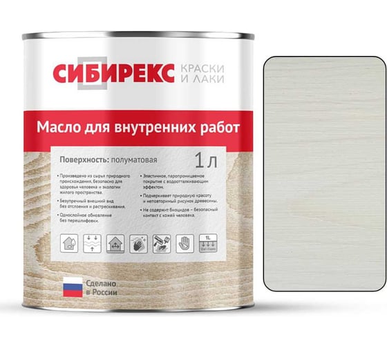 Масло для внутренних работ сибирекс, защитно-декоративное, цвет Белёный ясень, 1 л 5101RU11