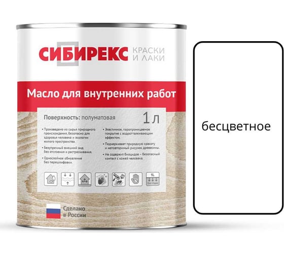 Масло для внутренних работ сибирекс, защитно-декоративное, бесцветное, 1 л 5100RU11