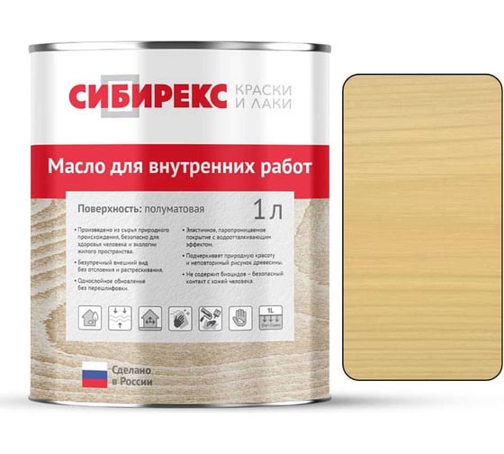 Масло для внутренних работ сибирекс, защитно-декоративное, цвет Пшеничный, 1 л 5106RU11