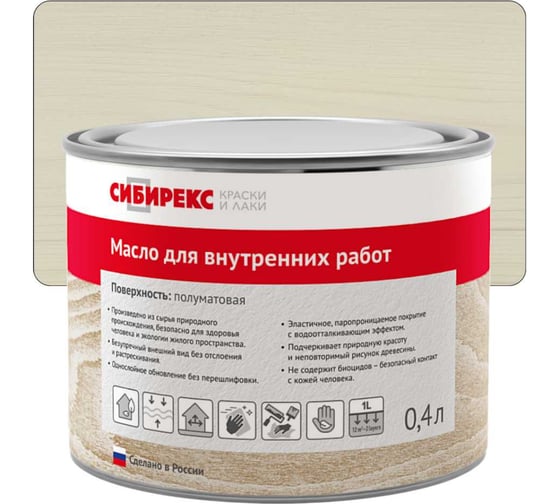 Масло для внутренних работ сибирекс, защитно-декоративное, цвет Пыльный беж, 400 мл 5103RU72