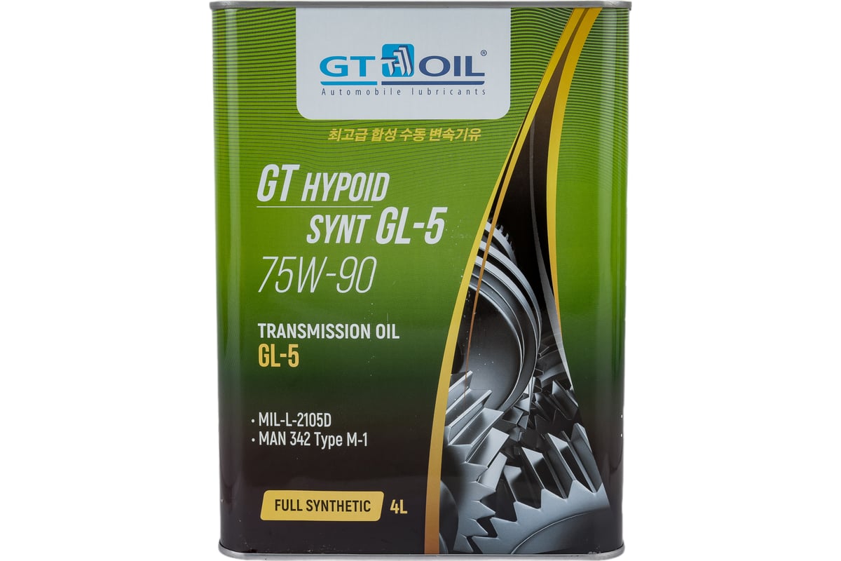 Масло Hypoid Synt, SAE 75W-90, API GL-5, 4 л GT OIL 8809059407875 оптимально для смазывания агрегатов механических трансмиссий легковых и грузовых автомобилей, автобусов, работающих в тяжелых условиях, где предписано использование масла класса АРI GL-5.