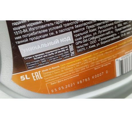 Технические характеристики масла GAZPROMNEFT 2389907512