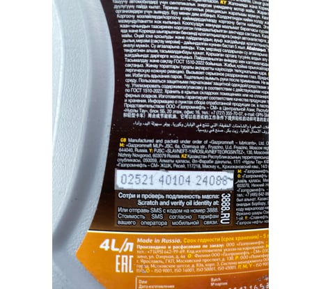 Недорогое (по сравнению с "оригинальным" импортным) маслом. Хотя три года назад в свой Аутлендер за эту цену покупал родное митсубишевское. Но куда деваться сейчас. Есть штрих-код для проверки подлинности на сайте Газпромнефти. Супруге тоже заливаю в Хьюндей Крета.