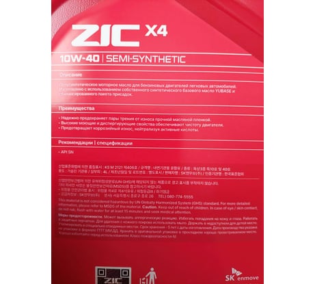 Масло моторное ZIC X4 10W-40 полусинтетическое 4 л 162766
