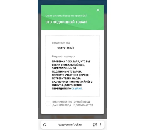 Проверка на оригинальность по коду пройдена успешно.