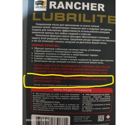 Отзывы о масле Rancher LUBRILITE цепном 0.946 л REZOIL Rezer 03.008.00019