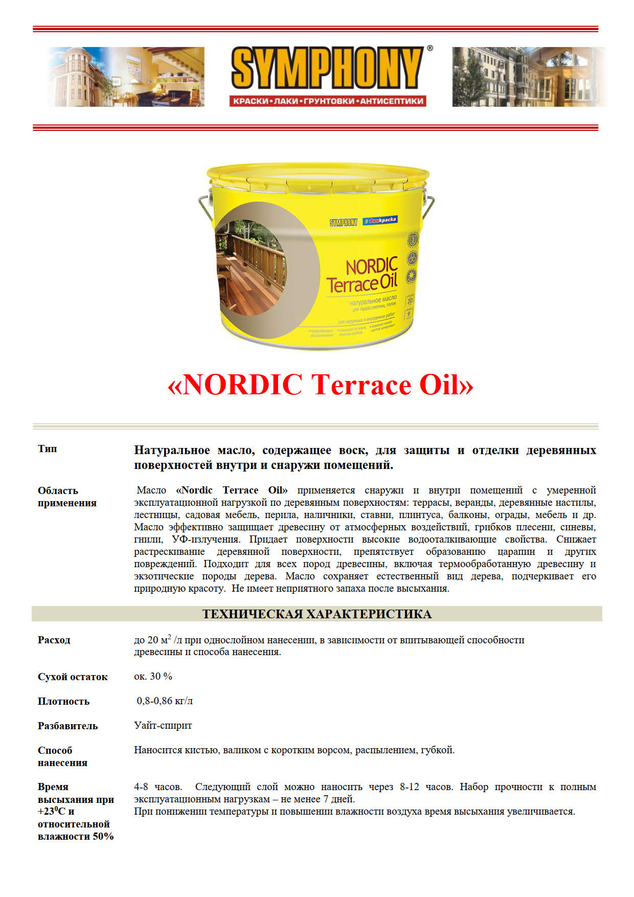 Масло SYMPHONY Nordic Terrace Oil, 10/9л, oсновной 00-01101226