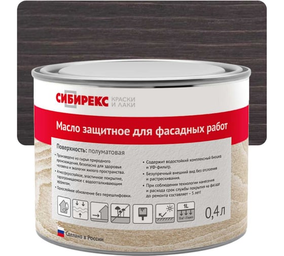 Масло защитное для фасадных работ СИБИРЕКС Коричневый эспрессо 0,4 л 6107RU72