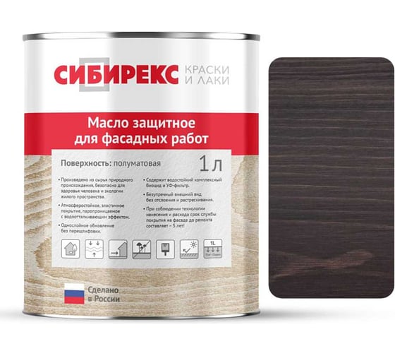 Масло защитное для фасадных работ СИБИРЕКС коричневый эспрессо, 1л 6107RU11