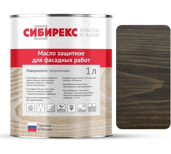 Масло защитное для фасадных работ СИБИРЕКС темный шоколад, 1л 6106RU11