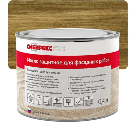 Масло защитное для фасадных работ СИБИРЕКС Темный янтарь 0,4 л 6103RU72