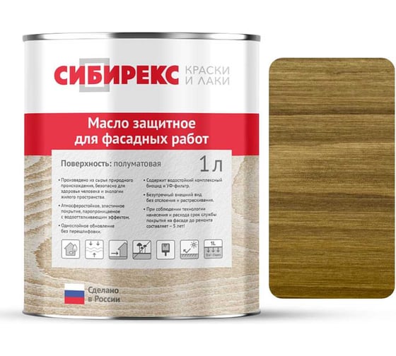 Масло защитное для фасадных работ СИБИРЕКС темный янтарь, 1 л 6103RU11