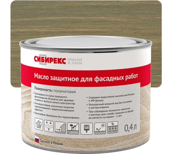 Масло защитное для фасадных работ СИБИРЕКС Теплый хаки 0,4 л 6104RU72