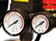 Визуальный контроль Два манометра отображают давление внутри ресивера и выходное давление. |