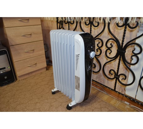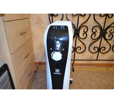 Напишу ка я отзыв на свой гаражный радиатор. Сейчас холода, он пашет без устали практически каждый день. Итак, гараж у меня около 20 квадратов, поэтому данный радиатор на 2 киловатта вполне справляется с обогревом помещения. Очень круто выполнено хранение сетевого шнура. Есть специальное место на корпусе, где шнур незаметно хранится. Если нужно перекатить радиатор, то шнур не будет болтаться под колёсами и задевать прочие предметы. Насчёт колёс. За пару сезонов они остались в первозданном состоянии, несмотря на постоянные перемещения по гаражу. При ремонте автомобиля и мотоцикла местоположение радиатора постоянно меняю, поэтому колёсики испытывают не слабую нагрузку. Но с ними всё ок. Далее. У радиатора 9 секций, ко всем есть доступ. Я имею в виду очистку прибора. При работе в моём пыльном помещении очень важно иногда протирать прибор сухой или влажной тряпочкой, отключив его, конечно. Три режима работы. На мой взгляд, они покрывают полностью различные потребности человека в плане обогрева помещения. На самой малой мощности температура в помещении составляет 15 градусов. Этого вполне достаточно ранней осенью или поздней весной, когда на улице уже довольно тепло, но вот к вечеру всё же холодает. На втором режиме уже можно довольно неплохо прогреть помещение даже поздней осенью. Вот сейчас у нас на улице минус 2, а у меня в гараже плюс 20 градусов. Нагрелось помещение довольно быстро, третий режим не включал. На третьем режиме пользуюсь зимой или когда совсем задубел. Ну или давно в гараж не заходил, пришёл - а тут минус 10 (как на улице). Тогда третий режим выручает. Радиатор выглядит очень стильно, сочетание белого и чёрного цветов приятное. По управлению всё элементарно - выбираем режим и выставляем температуру. За два сезона весь пластик остался практически как с завода, претензий нет. По покраске тоже. Масло не пахнет при работе, даже при максимальном нагреве. Поэтому я вполне доволен радиатором. Взял я его в своё время во многом из-за его "имени" - Electrolux. Всё же фирма хорошая, проверенная. Но, конечно, не название красит радиатор, а его качества и возможности. Но и на деле прибор доказал свою полезность и надёжность. Ставлю этому радиатору оценку "Пять".