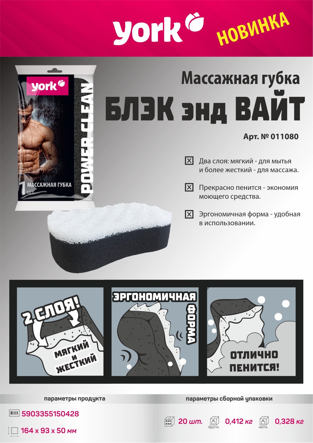 Черно-белая двусторонняя губка для ванны и массажа тела.