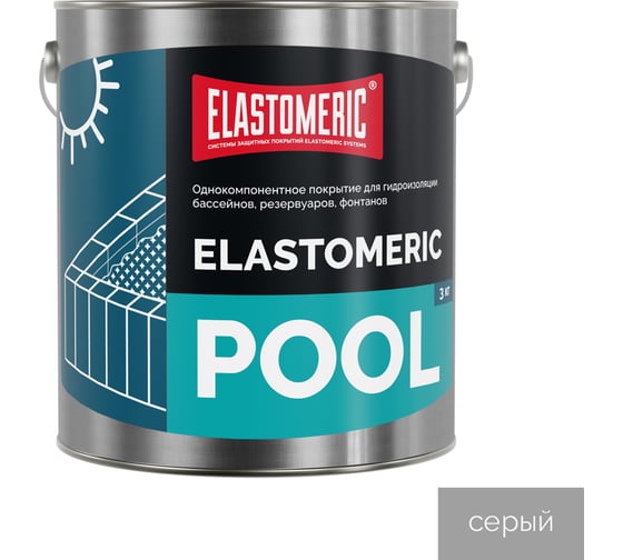 Мастика для бассейна Elastomeric Systems 3 кг, серая elastomeric pool ET-6006063
