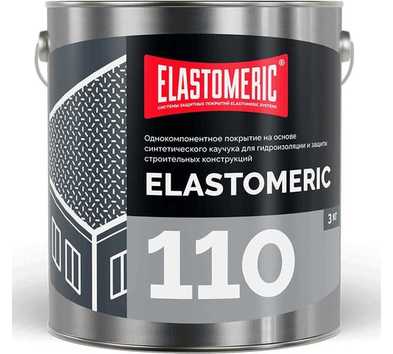Elastomeric 110 — однокомпонентная гидроизоляционная мастика на основе блок-сополимера синтетического каучука. Материал разработан для капитального ремонта старых битумных рулонных кровель, а также для устройства новых кровельных систем с повышенными требованиями к надёжности и долговечности.