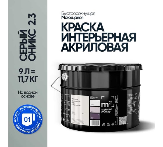 Краска матовая для стен и потолков моющаяся M2 SQUARE METER, СЕРЫЙ ОНИКС 2.3 СТ, 9 л 10212000100023