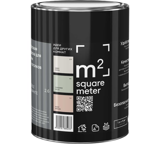 Матовая краска для стен и потолков моющаяся M2 SQUARE METER m2 NOBLE GRAPHITE 2.6 СТ, 1л 10212000010026