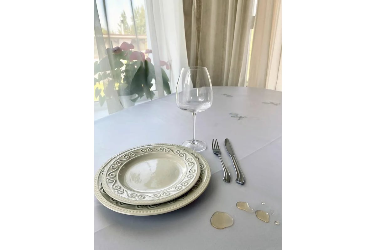Скатерть долговечна и практична в использовании, легко очищается от загрязнений, достаточно просто протереть ее влажной тряпкой. Изделие обладает термостойкостью и выдерживает температуру до 70 градусов. Скатерть выполнена из прочного и безопасного ПВХ материала, что обеспечивает долговечность и надежность.