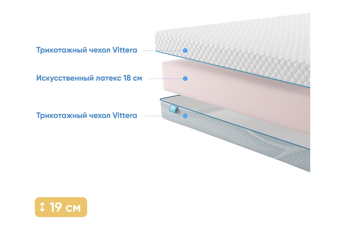 Модель ErgoRoll 18 - анатомический чехловой матрас от бренда Promtex. У модели присутствует съемный чехол на молнии. Съемный чехол удобен в эксплуатации, его можно легко снять и надеть обратно без проблем. Для поддержания чистоты и свежести чехол можно стирать в обычной стиральной машине, он сохранит свою форму и качество после множества стирок. А главное, ткань чехла отлично дышит, она мягкая и хлопковая на ощупь. ErgoRoll 18 является беспружинным. Основные преимущества таких моделей: полная бесшумность за счет отсутствия металлических деталей, отсутствие эффекта покачивания. Нагрузка на спальное место составляет 110 кг. Высота модели: 18 см. В данной модели используются следующие материалы: Трикотаж Vittera, Искусственный латекс, Трикотаж Vittera. Искусственный латекс - высокоэластичная пена средней жесткости и повышенной плотности, которая практически не отличается по свойствам от натурального латекса. Пористая структура искусственного латекса хорошо проветривается, что обеспечивает гигиеничность спального места. Чехол в модели ErgoRoll 18 изготовлен из материала Трикотаж. Преимущество трикотажа и в приятной текстуре лицевой стороны, а так же в более привлекательном внешнем виде. Модель ErgoRoll 18 имеет 2 одинаковые стороны жесткости. Степень жесткости модели ErgoRoll 18 с обеих сторон: Средний. Гарантийный срок - 1.5 года. Срок службы составляет 10 лет.