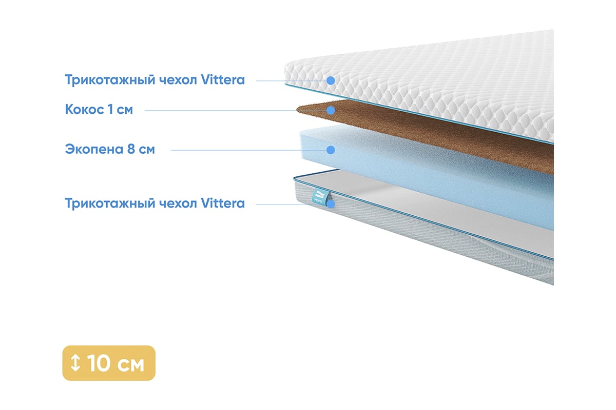 Модель Roll Standart 8 Cocos - анатомический чехловой матрас от бренда Promtex. У модели присутствует съемный чехол на молнии. Съемный чехол удобен в эксплуатации, его можно легко снять и надеть обратно без проблем. Для поддержания чистоты и свежести чехол можно стирать в обычной стиральной машине, он сохранит свою форму и качество после множества стирок. А главное, ткань чехла отлично дышит, она мягкая и хлопковая на ощупь. Roll Standart 8 Cocos является беспружинным. Основные преимущества таких моделей: полная бесшумность за счет отсутствия металлических деталей, отсутствие эффекта покачивания. Нагрузка на спальное место составляет 95 кг. Высота изделия составляет 9 см. В данной модели используются следующие материалы: Трикотаж Vittera, Кокос, Экопена, Трикотаж Vittera. Экопена - это искусственный материал на основе пенополиуретана средней жесткости, который характеризуется экологичностью и гипоаллергенностью. Кокосовая койра - натуральный износостойкий материал, отличающийся высокой жесткостью и упругостью. Чехол в модели Roll Standart 8 Cocos изготовлен из материала Трикотаж. Данная модель матраса имеет сразу 2 стороны жесткости: Средне-жесткий и Средний. Преимущество матрасов с разными сторонами жесткости заключается в том, что матрас можно переворачивать с более мягкой стороны на более жесткую и наоборот. Гарантийный срок - 1.5 года. Срок службы составляет 10 лет.