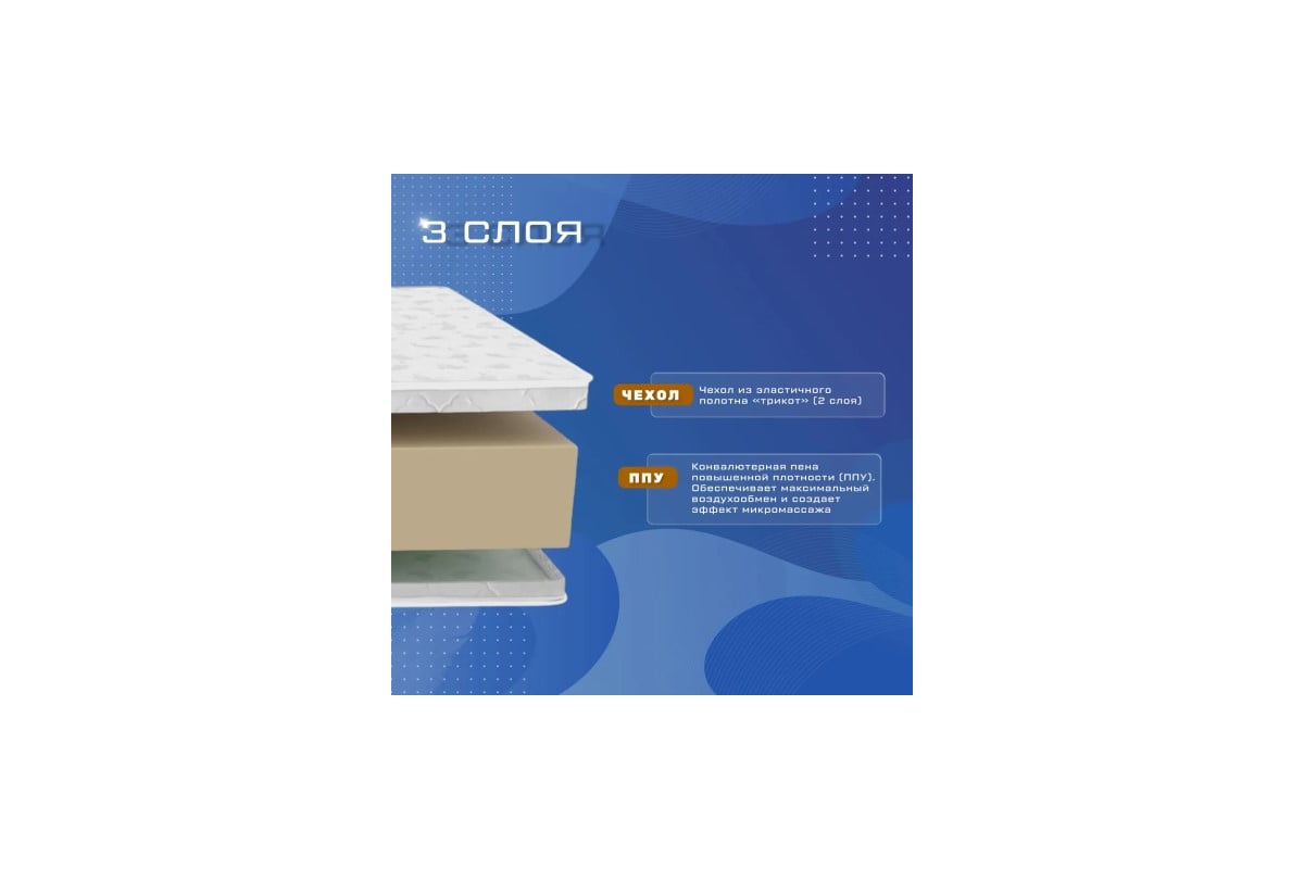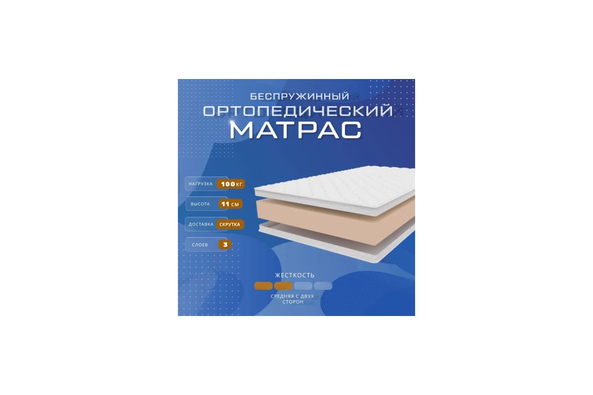 Беспружинный ортопедический матрас двухсторонний Vita-Sleep Classic Mini Sk с одинаковой средней жесткостью сторон. Матрас средней жесткости, нагрузка на спальное место до 100 кг, высота матраса 11 см, доставляется в скрученном виде. Чехол матраса выполнен из эластичного полотна «трикот», обладающего высокой прочностью и безупречными грязе- и водоотталкивающими характеристиками, ткань отлично пропускает воздух, обеспечивая постоянную естественную его циркуляцию, является надежной защитой для наполнителя. Для комфорта чехол простеган на слое синтепона плотностью 100 гр. Высокоэластичная ортопедическая пена - гипоаллергенная пена высокой плотности, позволяющая значительно увеличить сроки эффективной эксплуатации, не накапливает пыль, хорошо выводит влагу.