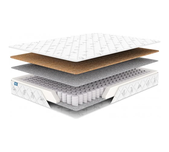 Наполнители: В качестве наполнителя у спальной поверхности реализовано полотно кокосовой койры. Данный материал изготавливается из растительных волокон, которые собираются у кокосовой пальмы. Койра не подвержена гниению и другим естественным процессам за счёт уникальных эфирных масел, которые выделяет дерево. По этим же причинам материал является антибактериальным, поэтому спальное место на долго сохранит свои гигиенические свойства. Койра является жёстким материалом с ортопедическими свойствами. Она хорошо поддерживает все отделы позвоночника, не позволяя терять спине правильную опору на матрасе.