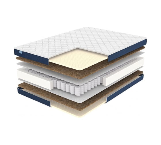 В матрасе сочетаются койра кокоса и природный латекс, они в одинаковой комбинации проложены сразу с двух сторон. Такой тандем считается универсальным и классическим, поскольку оказывает как ортопедическую поддержку, так и анатомическую подстройку к формам тела.