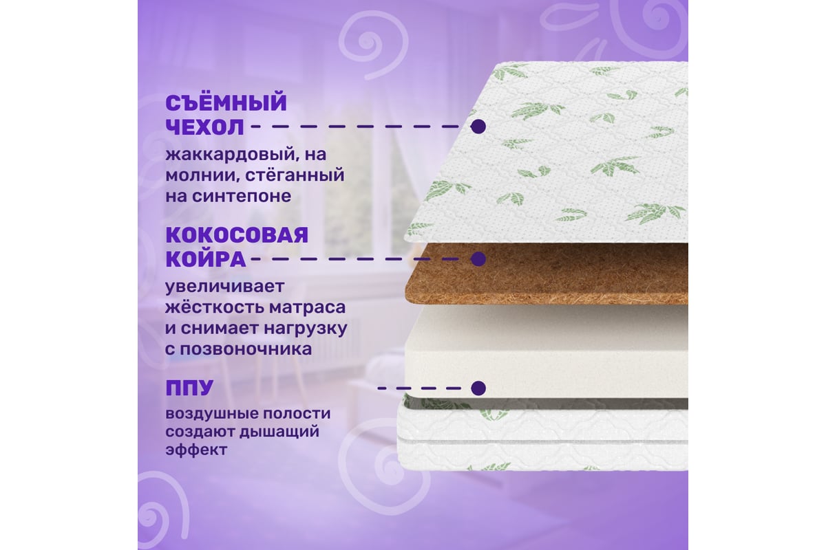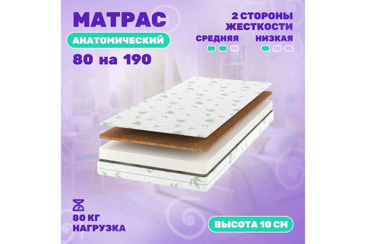 Матрас Капризун алое вера, ппу, с кокосом, 190 на 80 см 413039