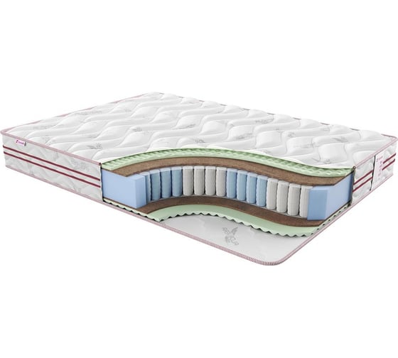 Модель Sante Dual fame - анатомический матрас от бренда Sontelle. У матраса Sante Dual fame расположен блок независимых пружин. Тип пружинного блока TFK представляет собой 512 цилиндрических пружин на спальное место (256 на кв.м). Изделия с пружинным блоком TFK подойдут парам, в которых разница в весе партнеров не превышает 20 кг, и людям с весом до 100 кг. В модели Sante Dual fame количество пружин на спальное место составляет 500 шт. Нагрузка на спальное место составляет 110 кг. Высота модели: 26 см. В данной модели используются следующие материалы: Трикотаж Tail, Relax Foam, Кокос, Войлок, ПБ TFK, Войлок, Кокос, Relax Foam, Трикотаж Tail. Материал Relax Foam - это пена средней жесткости с особым рельефом, которая обеспечит вам полное расслабление за счет массажного эффекта. Кокосовая койра - натуральный износостойкий материал, отличающийся высокой жесткостью и упругостью. Войлок - плотный прокладочный материал из натуральных и искусственных волокон, который часто используется в пружинных моделях для защиты материалов наполнителей и чехла изделия. Чехол в модели Sante Dual fame изготовлен из материала Трикотаж. Преимущество трикотажа и в приятной текстуре лицевой стороны, а так же в более привлекательном внешнем виде. Модель Sante Dual fame имеет 2 одинаковые стороны жесткости. Степень жесткости модели Sante Dual fame с обеих сторон: Средне-жесткий. Гарантийный срок составляет 2 года. Срок службы составляет 15 лет.