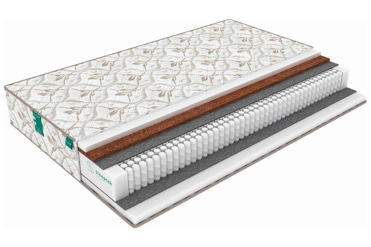 Модель с средней и умеренно-жесткой сторонами. Основой матраса служит блок независимых пружин S1000, который содержит тысячу пружинок в расчете на спальное место. Такая плотность пружин дает возможность матрасу гибко подстраиваться под тело спящего. А это, в свою очередь, гарантирует полноценное расслабление. Блок пружин отделен от наполнителей слоями термовойлока,он защищает их от контакта с пружинами и продлевает срок службы матраса. Наполнителем стороны средней жесткости служит ортопедическая пена. Это упругий, экологически чистый материал, не вызывающий аллергических реакций.Пена имеет структуру с множеством мелких ячеек, благодаря чему хорошо вентилируется и «дышит», быстро сохнет и не скапливает пыль. Более жесткая сторона представлена койрой кокоса и ортопедической пеной. Койра придает этой поверхности максимальную ровность, хорошо держит форму, не деформируется и не образует комков даже при длительном интенсивном использовании. По периметру матраса предусмотрено усиление из плотной пены, что продлевает срок эксплуатации матраса.
