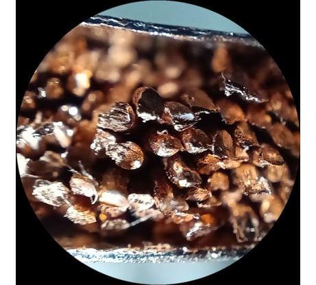 Зажимает очень жёстко (НШВИ(2) 10-14 (КВТ)). Сначала удалось извлечь из матрицы только с помощью плоскогубцев (на фото - чёрный). А затем смазал матрицу и удалось узвлечь с помощью отвёртки (на фото - синий). Обезжирил и далее на фото - после рубильника ABB с затяжкой 2.8Nm. А также попытался сфотографировать и под микроскопом в телефоне :) "Может лыжи не едут" и, наверное, я что-то сделал не так, но пока что - деньги на ветер...