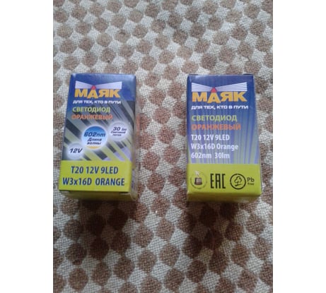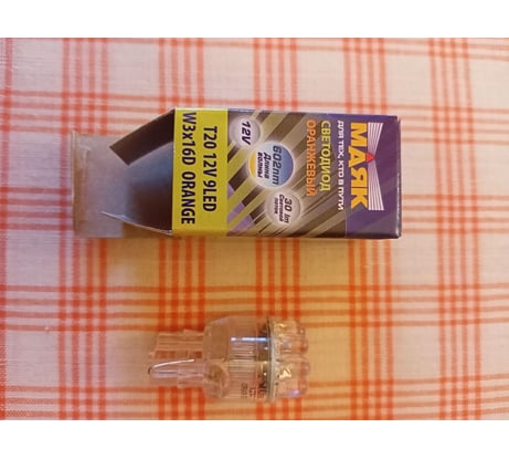 Автомобильная лампочка светодиод МАЯК 4606735522358 ORANGE 12V, T20, 9LEDW3x16d, стоп 12T20-Or\9LED