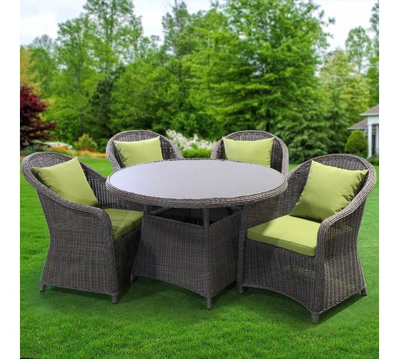 Мебель садовая Green Days Элит Премиум, сер, стол, 118х118х75 см, 4 кресла, подушка зел, CYH1830W-1 360721