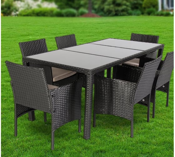 Мебель садовая Green Days Эльмира, чер, стол, 190х90х75 см, 6 кресел, под беж, 120 кг, J-2022 355560