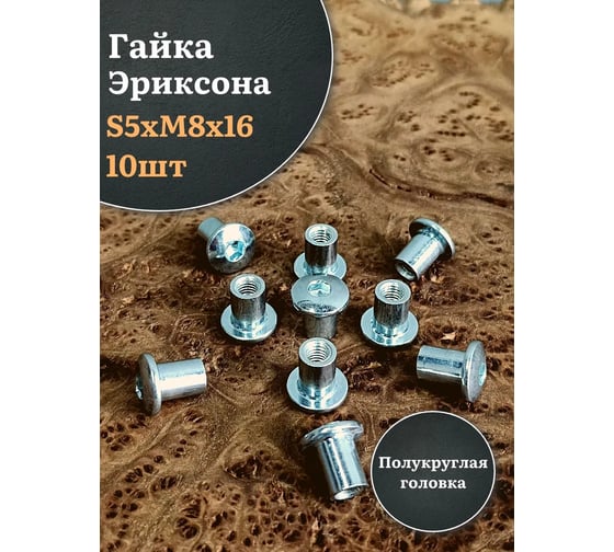 - Мебельная гайка Эриксона М8 с полукруглой головкой, 10 шт.