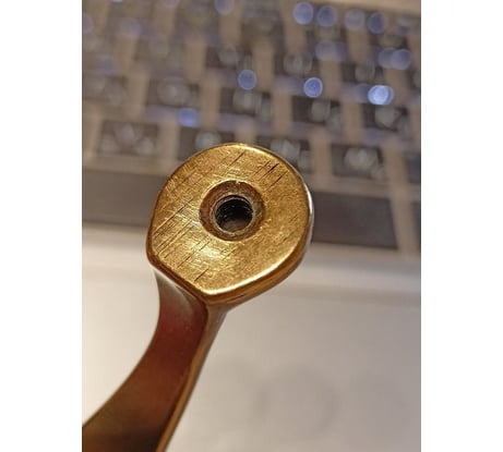 Все отлично, как и хотел - старая бронза. Попробовал стереть наждачкой покрытие на месте контакта скобы с ящиком - не получилось. С реставрируемым старым столом начала прошлого века будет смотреться отлично.