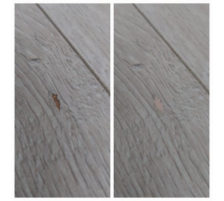 - Затирайте воск в повреждение быстрыми и уверенными движениями. Либо вдавите уголком шпателя небольшое количество воска, одновременно разглаживая на поверхности