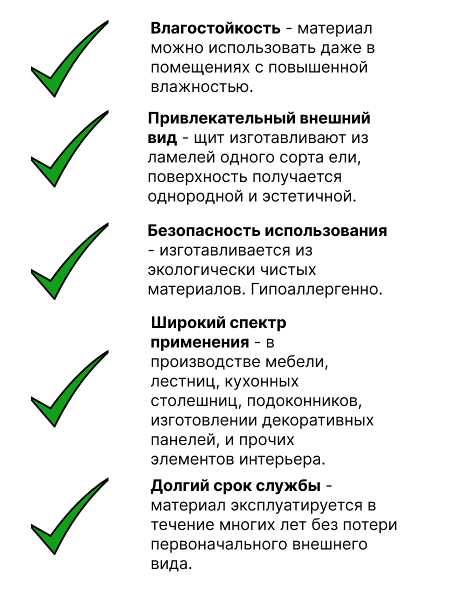 - Привлекательный внешний вид – щит изготавливают из ламелей одного сорта ели, поверхность получается однородной и эстетичной