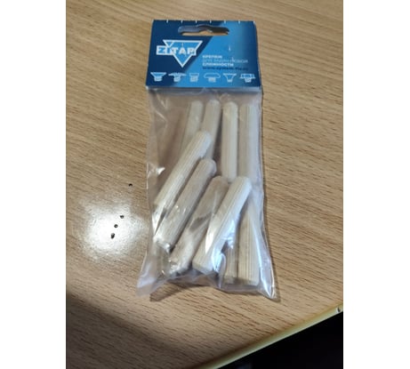 В упаковке 12 ровных, с одинаковым диаметром 10мм и длиной ≈50мм, мебельных шканта. Порадовало наличие ярко выраженной продольной накатки на каждом изделии.