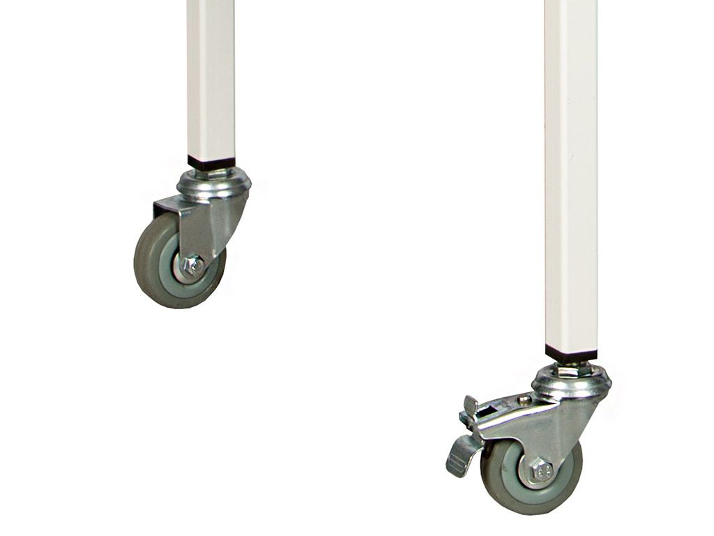 - Столик имеет 4 пластиковых колеса D= 50 мм, два из которых снабжены тормозом