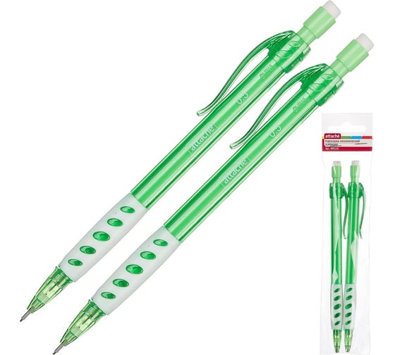 Механический карандаш Attache SuperGrip 0.5 мм, зеленый корпус, 2 шт/уп 889120